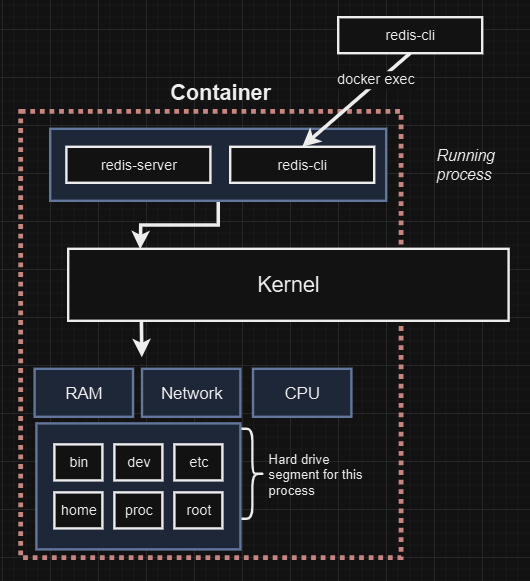docker ps# CONTAINER ID IMAGE COMMAND CREATED STATUS PORTS NAMES# 408ff5ce70cb redis "docker-entrypoint.s…" About a minute ago Up About a minute 6379/tcp nice_dhawandocker exec -it 408ff5ce70cb redis-cli127.0.0.1:6379> set number 1# OK127.0.0.1:6379> get number# "1"